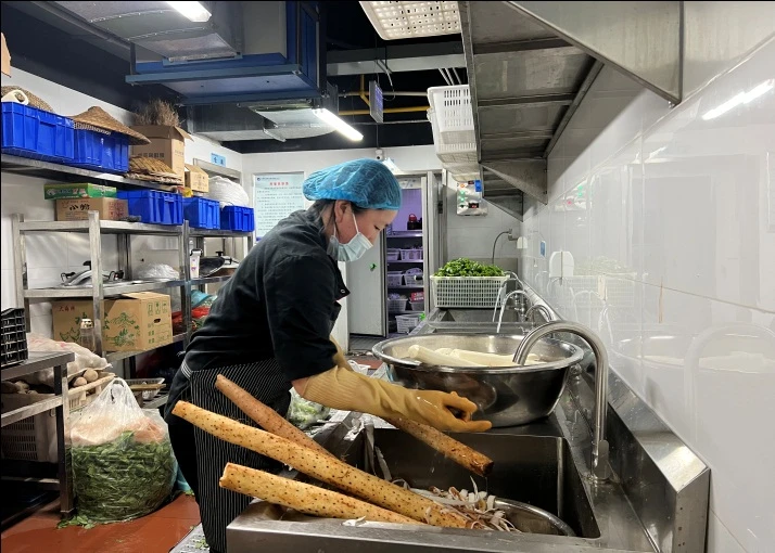 廚師長曹永說,“做廚師這些年,衣服都是干了濕、濕了干。雖然又熱又累,但看著員工吃得開心,值得。”