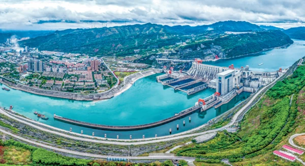 近年來(lái),云南加快建設(shè)新型能源體系,推進(jìn)國(guó)家能源基地建設(shè),推動(dòng)綠色能源與綠色制造深度融合。圖為位于云南省水富市與四川省宜賓市交界的金沙江峽谷出口處的向家壩水電站。柴峻峰/攝