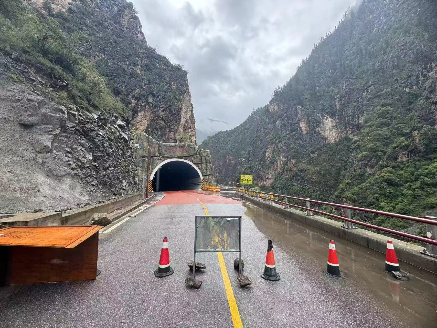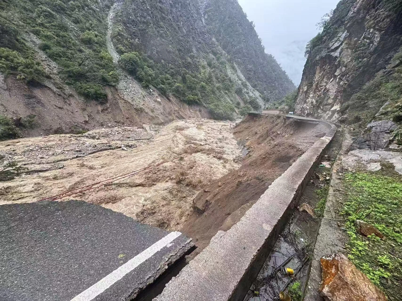 5月31日上午,受強降雨影響,德貢公路K5+750—K5+970段(德欽段永支村)路基損毀、路面坍塌,交通中斷。險情發(fā)生后,德貢公路指揮部會同地方相關部門立即對中斷路段實施封閉管理,設置警示標志,禁止車輛及行人通行。