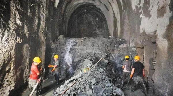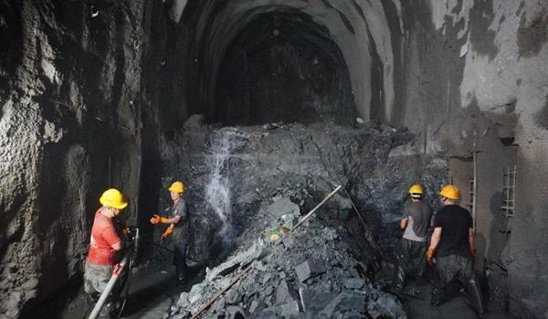 3月28日,記者在1號斜井施工作業(yè)現(xiàn)場看到,地下全是積水、淤泥,隧道頂上、側(cè)面的巖石縫隙中有不斷流出的涌水,有的已經(jīng)形成水柱。面對這一困境,技術(shù)人員通過調(diào)整隧道結(jié)構(gòu)曲率、加強鋼架型號、調(diào)整加密鋼架間距,徑向注漿,采取仰拱初支與拱墻鋼架一次成環(huán)等措施,有效控制了圍巖變形,終于恢復(fù)了掘進。