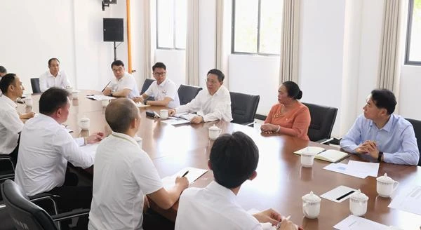 王予波在瑞麗沿邊產(chǎn)業(yè)園區(qū)管委會(huì)與企業(yè)負(fù)責(zé)人、工人代表和基層干部群眾座談。