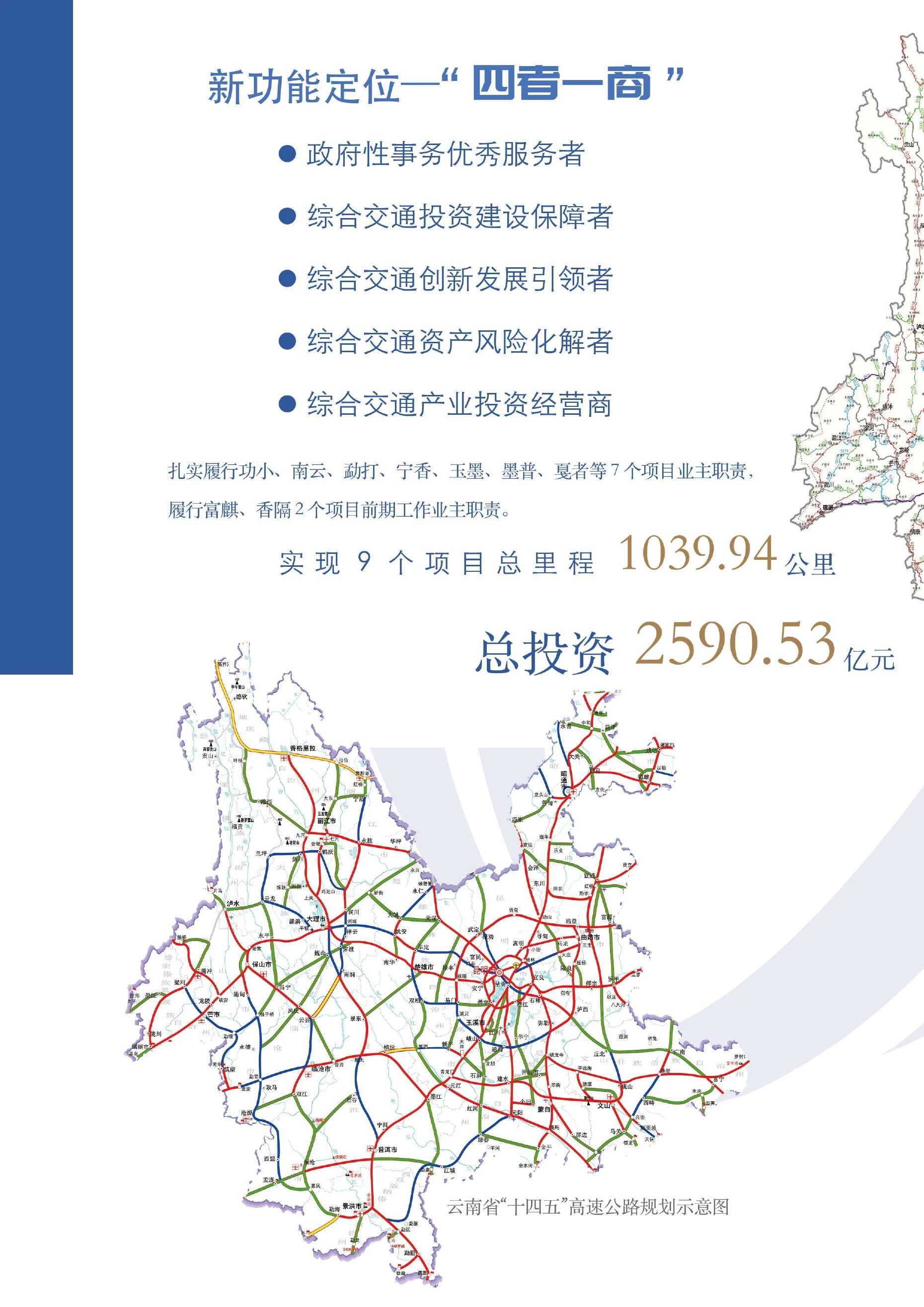 云南交發(fā)項(xiàng)目管理有限公司成立于2017年12月11日,注冊(cè)資本金為10億元。公司定位為功能性單位,重點(diǎn)聚焦做好項(xiàng)目前期、PPP項(xiàng)目監(jiān)管政府性事務(wù)工作。目前主要負(fù)責(zé)推進(jìn)玉墨、墨普、富麒、戛者及寧香5 條國(guó)高項(xiàng)目的工可階段前期工作,承擔(dān)香麗、華麗、保瀘、墨臨、彌玉、玉楚、昆楚、楚大、瑞孟、勐綠共10個(gè)省級(jí)事權(quán)高速公路PPP項(xiàng)目的政府出資人監(jiān)管及南云、勐打、功小共3個(gè)“BOT+股權(quán)合作”項(xiàng)目的監(jiān)事會(huì)辦公室管理工作,同時(shí)開(kāi)展?jié)櫝堑诙蟮?號(hào)寫(xiě)字樓租賃業(yè)務(wù)。