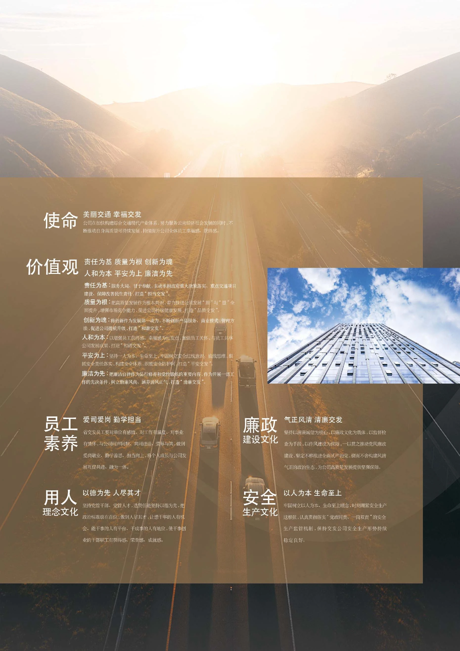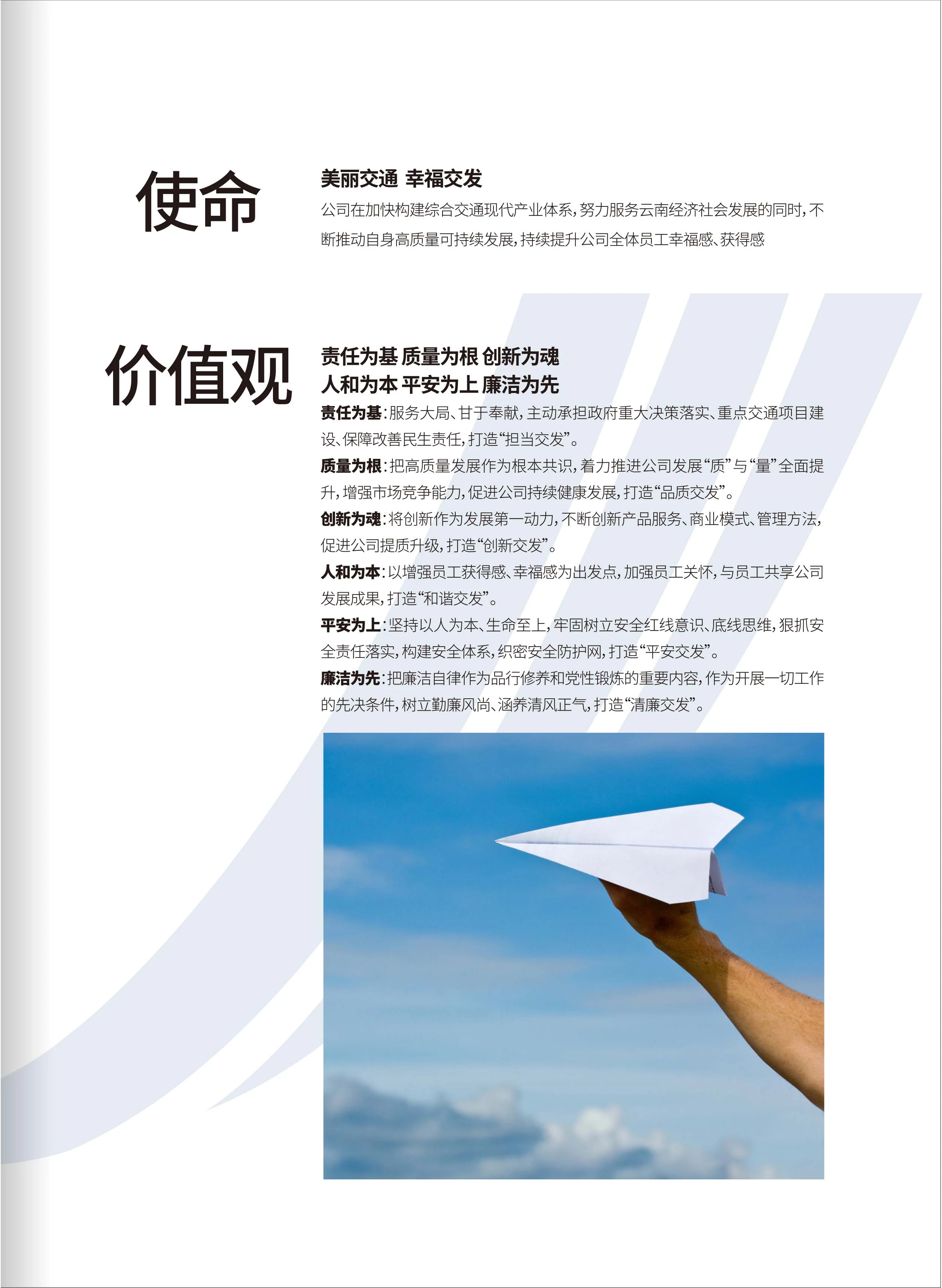 以“規(guī)模提升、集采集供、品類(lèi)拓展”為發(fā)展思路,依托交通主業(yè)擴(kuò)大物資貿(mào)易業(yè)務(wù)規(guī)模;以“價(jià)值挖潛、品牌提升、延伸拓展”為發(fā)展核心,深挖路域資源全面提升運(yùn)營(yíng)管理水平;以“開(kāi)放合作、創(chuàng)新發(fā)展、精品打造”為發(fā)展目標(biāo),聚焦優(yōu)勢(shì)資源持續(xù)深化對(duì)外合作;堅(jiān)持“高起點(diǎn)、高質(zhì)量、高水平”發(fā)展要求,創(chuàng)新“交通產(chǎn)業(yè)+資源整合+資本嫁接”商業(yè)模式,著力構(gòu)建成為一體多元企業(yè)%,有多個(gè)項(xiàng)目獲獎(jiǎng)。其中,昆玉高速公路獲2003年“中國(guó)建筑工程魯班獎(jiǎng)”;硯平高速公路獲2006年度“國(guó)家優(yōu)質(zhì)工程銀質(zhì)獎(jiǎng)”;安楚高速公路獲2007年度“國(guó)家優(yōu)質(zhì)工程銀質(zhì)獎(jiǎng)”獎(jiǎng)項(xiàng)。